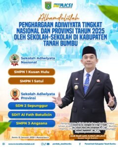 “Adiwiyata bukan sekadar simbol. Tetapi wujud nyata bahwa sekolah di Tanah Bumbu mampu menanamkan budaya peduli lingkungan kepada peserta didik,” pungkasnya.